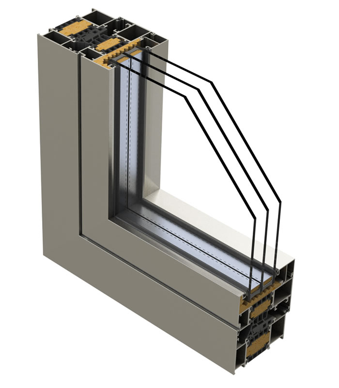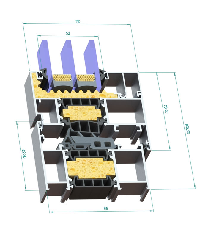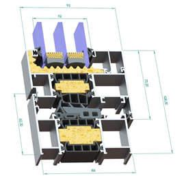 SERIE DE CARPINTERIA PRACTICABLE EUROPEO SM 85RT CONSTA DE PERFILES DE 85mm CONFORMADOS POR POLIAMIDA TUBULAR DE 39mm Y UN ESPESOR GENERAL DE 1,8mm.
