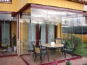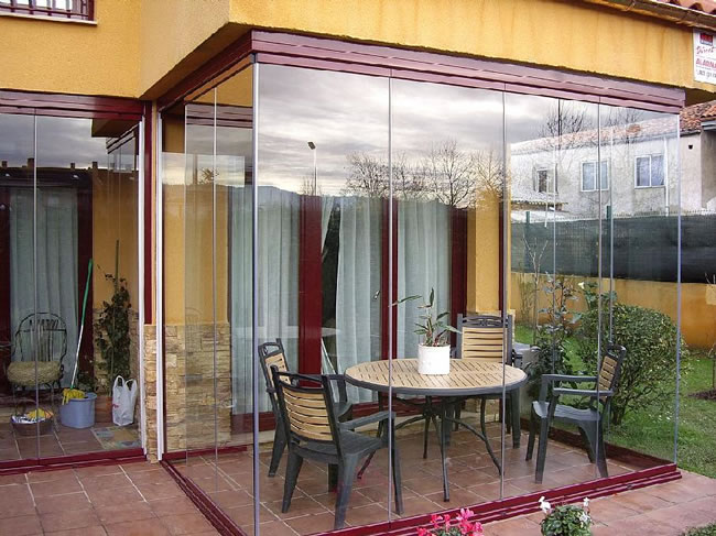 NUESTRO SISTEMA PANORAMICO CORREDIZO GIRATORIO AISLA DEL EXTERIOR MEDIANTE PANELES DE VIDRIO TEMPLADO DE 8-10MM,AL NO LLEVAR PERFILES VERTICALES PERMITE UNA VISION LIMPIA Y PANORAMICA SIN ROMPER CON LA ESTETICA DE LA FACHADA.